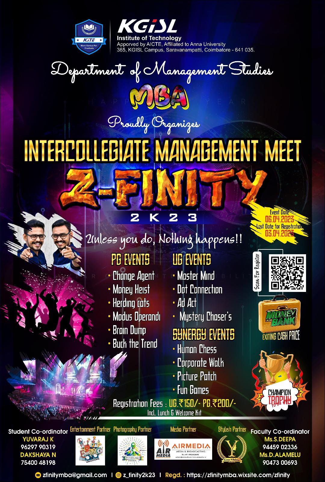 The Department of management studies has organized an inter-collegiate meet on 6th April 2023. The event included several competitions like Paper presentation, Best Manger, Business Quiz, HR, Finance and Marketing games for both UG and PG students.