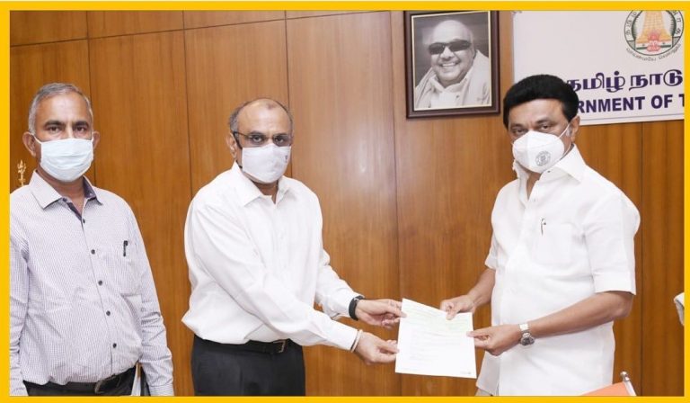 A contribution of Rs. 1 crore towards Chief Minister’s Public Relief Fund to battle COVID-19 was presented to Hon’ble Chief Minister Thiru MK Stalin, on behalf of Dr. G. Bakthavathsalam, Chairman, KG Hospital, KGiSL and KGiSL Educational Institutions, by Dr. Ashok Bakthavathsalam.