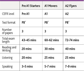 Cambridge English Qualifications provide reliable assessment at the CEFR levels above and below the target level. These exams are also reported on the Cambridge English Scale, which provides more detailed information on achievement. Our qualifications for young learners – Pre A1 Starters, A1 Movers and A2 Flyers – report achievement at the target level and the one below.