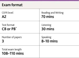 | 6th | A2 Key for Schools This qualification helps learners to fully develop their everyday written and spoken English at Level A2. The exam builds on the skills students have achieved at A2 Flyers. |