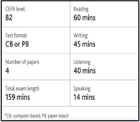 | 7th to 8th | B2 First for Schools This qualification is a great way for learners to prepare for higher level exams, and shows they have the language skills needed to communicate confidently in an English-speaking environment. |